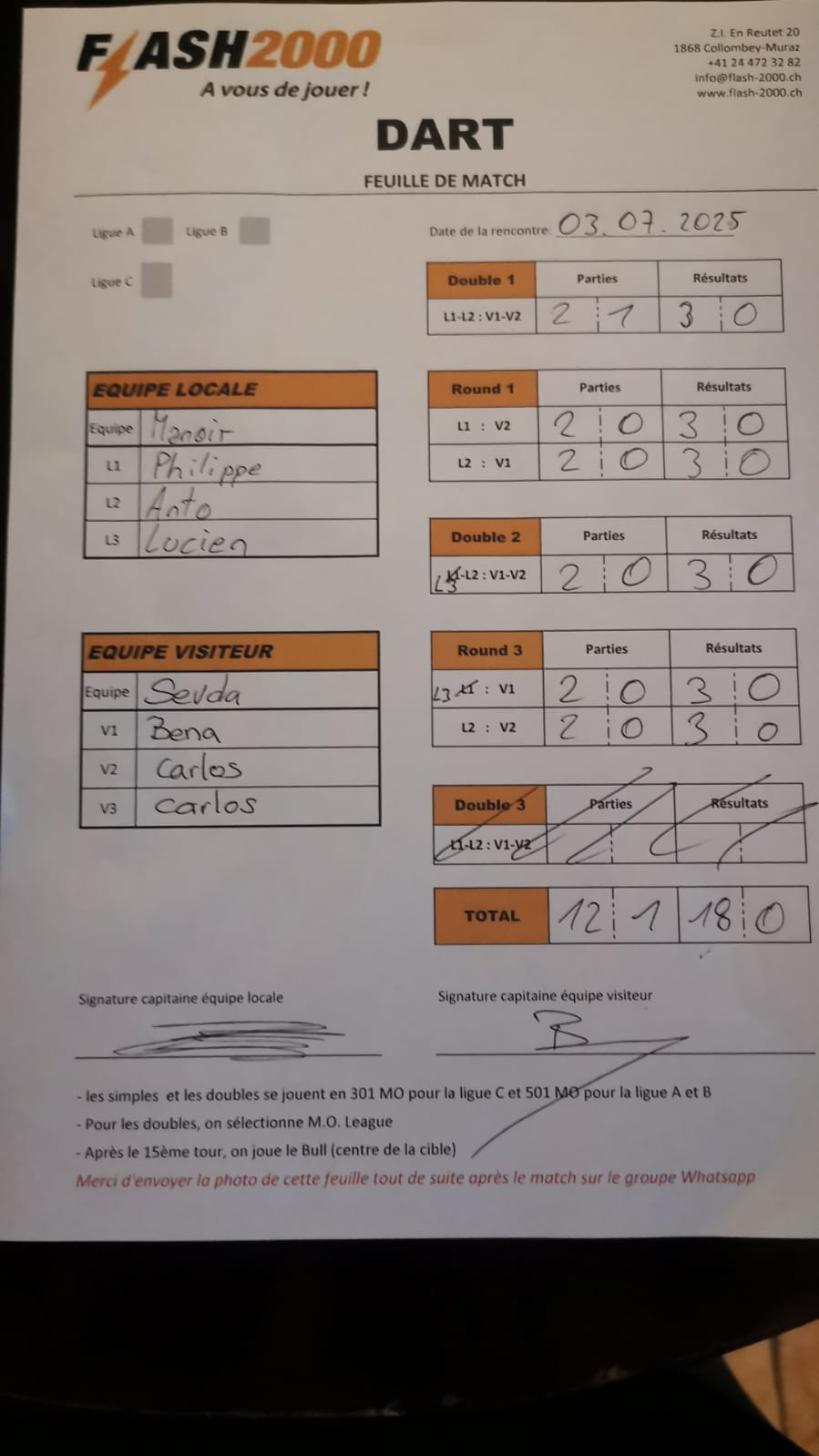Equipe visiteur