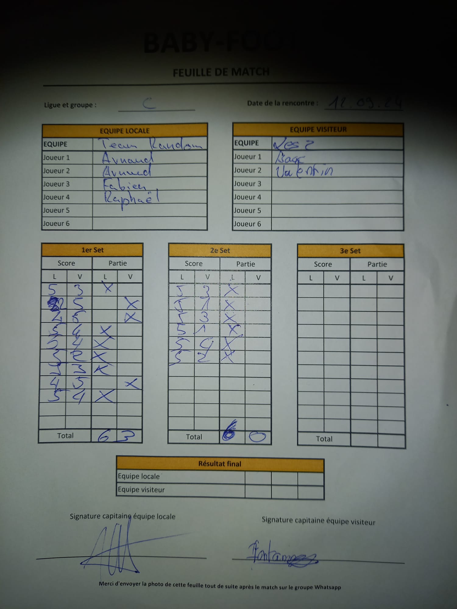 Equipe visiteur